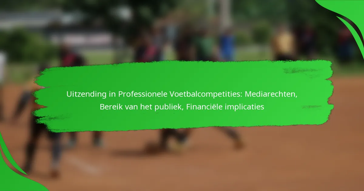 De uitzending van professionele voetbalcompetities speelt een cruciale rol in het vormgeven van de financiële en publieksdynamiek van de sport. Mediarechten geven omroepen de mogelijkheid om wedstrijden uit te zenden, wat aanzienlijke inkomsten genereert en het kijkerspubliek zowel nationaal als internationaal uitbreidt. De populariteit van een competitie beïnvloedt direct het bereik van het publiek, waarbij grote competities wereldwijde fans aantrekken, terwijl kleinere competities vaak gericht zijn op lokale markten. Uiteindelijk zijn deze uitzendrechten van cruciaal belang voor de financiële gezondheid van clubs, met invloed op alles, van ticketverkoop tot spelerssalarissen.
